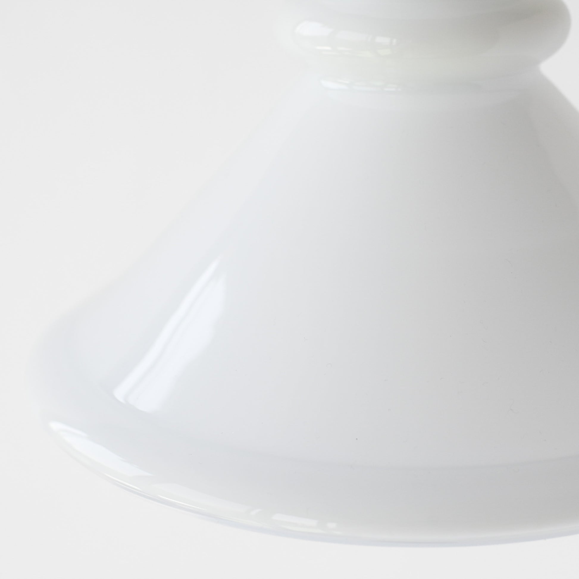 【Apoteker/アポティカー】とはドイツ語で「薬剤師」という意味があり、そのデザインは薬瓶からイメージされたとされています。シェードの素材はオパールホワイトと呼ばれる乳白色のガラスの上からクリアガラスを重ねて熔着する技法で製造され、柔らかさを持ちながら均等に光が拡散される構造。繊細で落ち着いた光が上質な雰囲気をもたらします。