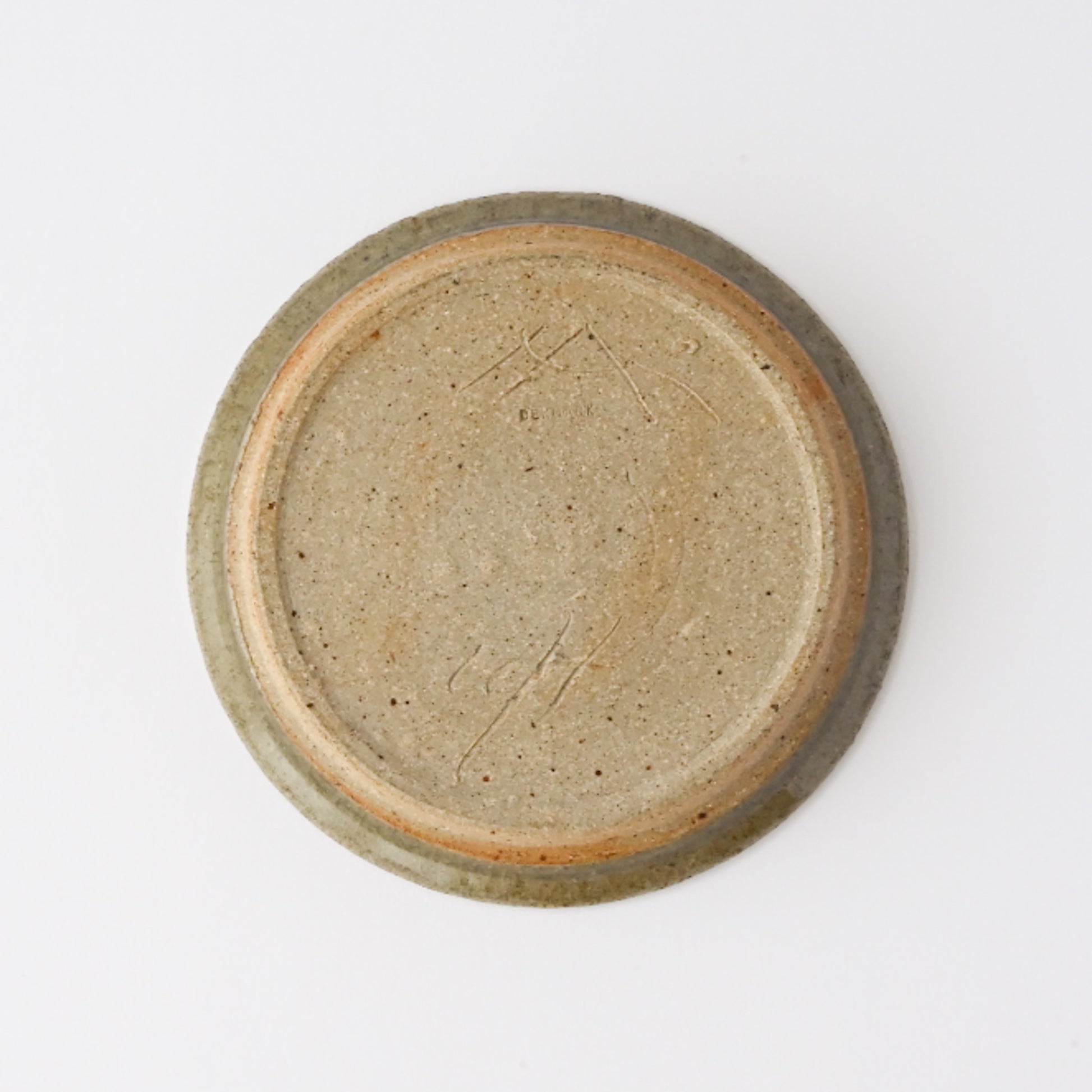 こちらの作品は木々と家屋が温かみのあるタッチで描かれ、プレートの縁には手描きの線模様があり、素朴な絵柄と線の凹凸、素材本来の温かみのある質感を残しながら、一つの絵画のようにも見えるディティールに拘りを感じます。デザイナーは不明。再入荷も難しい、とても希少なヴィンテージアイテムです。