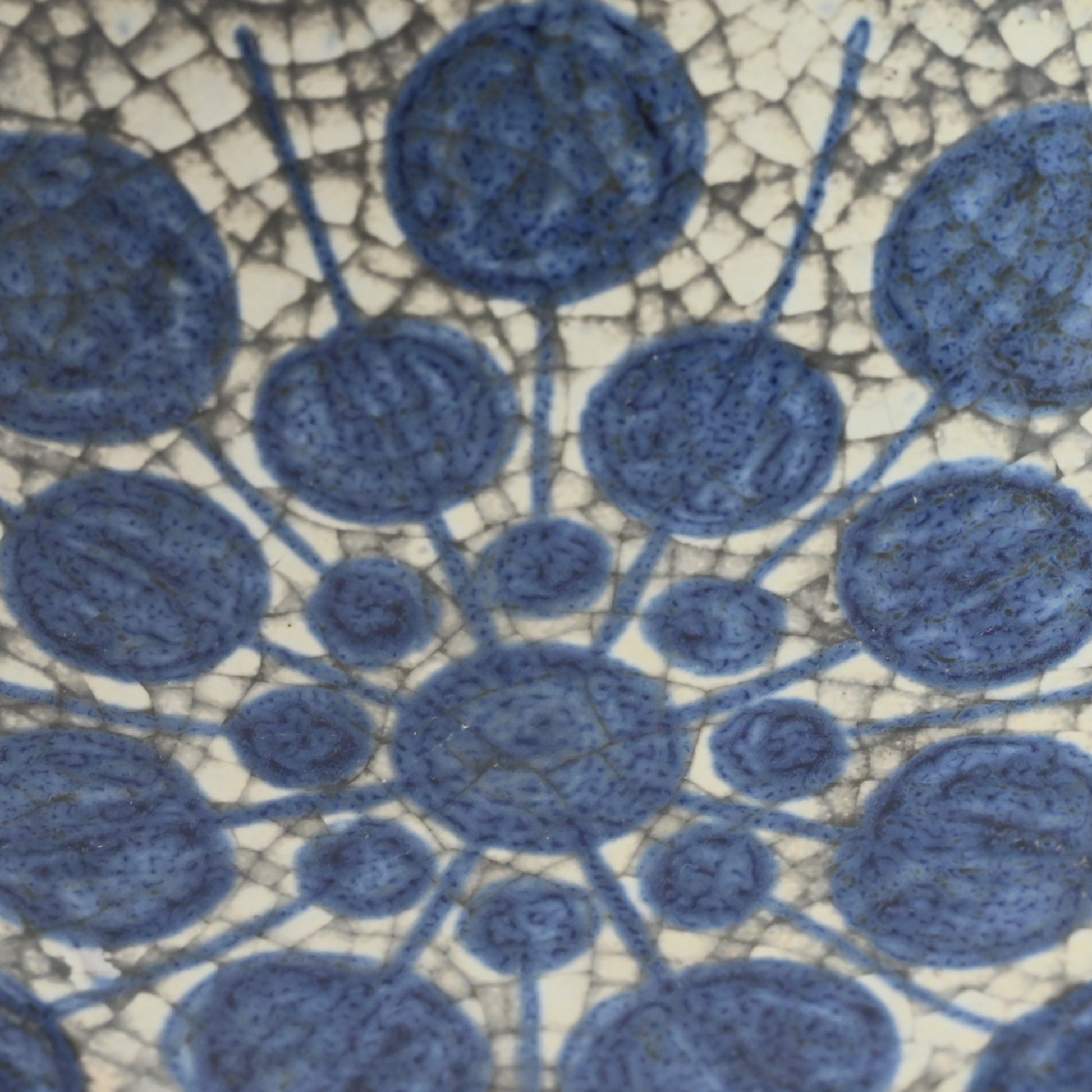 工房ならではの温かみあるフォルムと釉薬の質感が特徴で、描かれた花のような絵柄とそれを取り囲む存在感のあるデザイン。