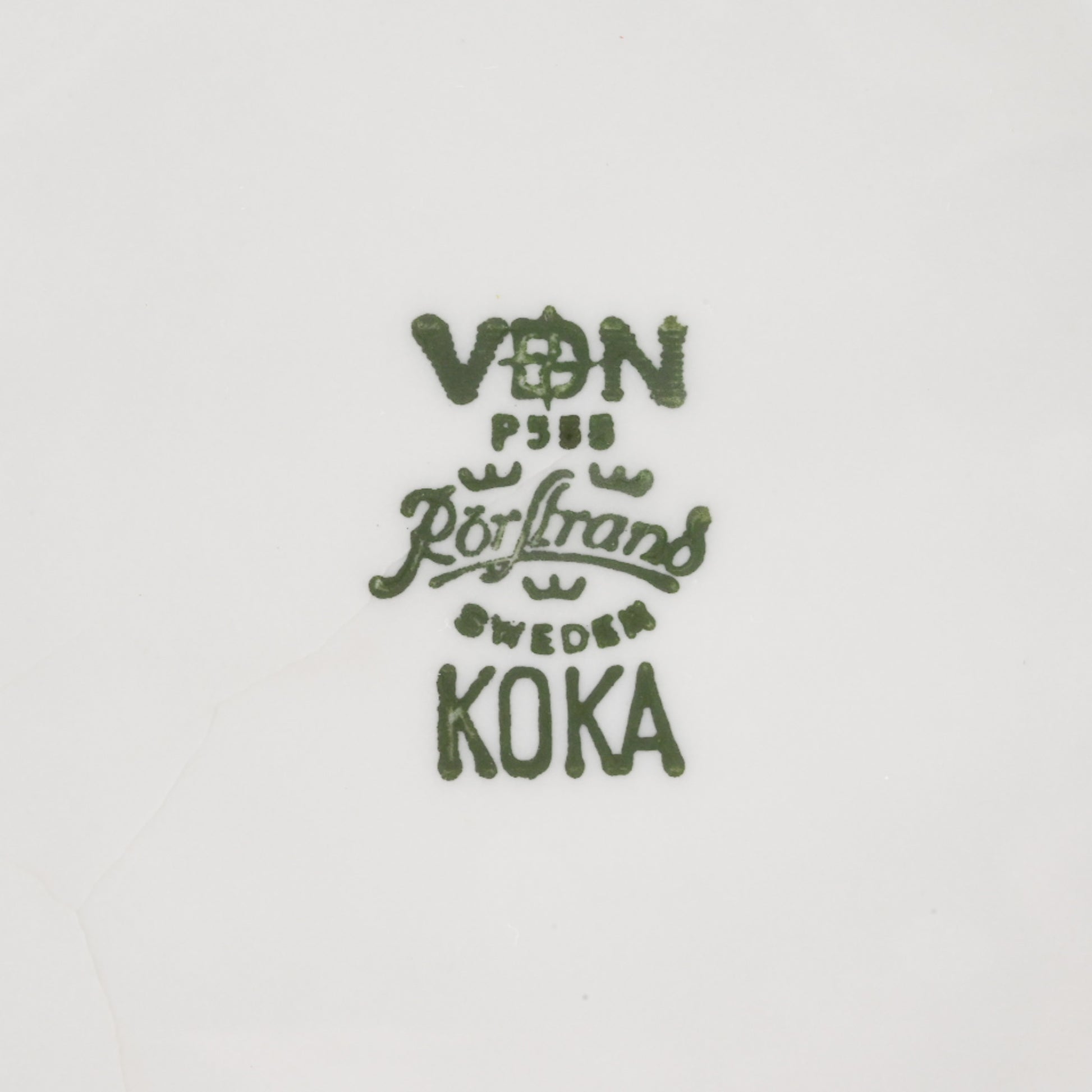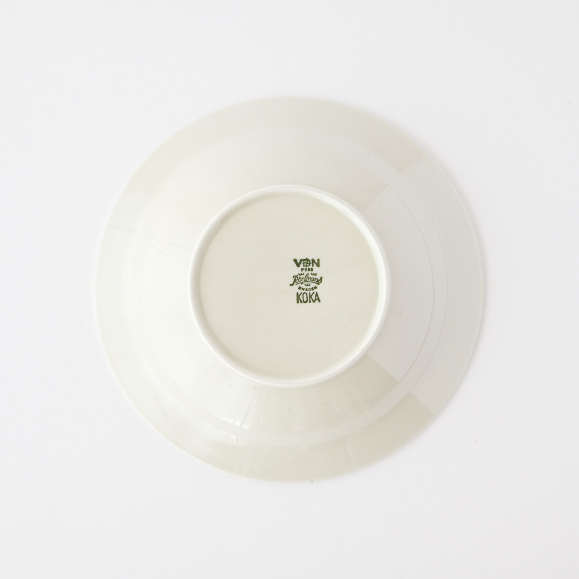 スウェーデンの陶器メーカーとして永い歴史を持つロールストランドの為にHertha Bengtsson (ヘルサ・ベングトソン)が1953年にデザインしたKokaシリーズのプレートです。プレートの周りには線模様がやさしいタッチで描かれていて温かみがあり、鮮やかなコバルトブルーがお料理をより美しく引き立ててくれます。ほど良い深さがあり、取り分け皿としてもおすすめです。