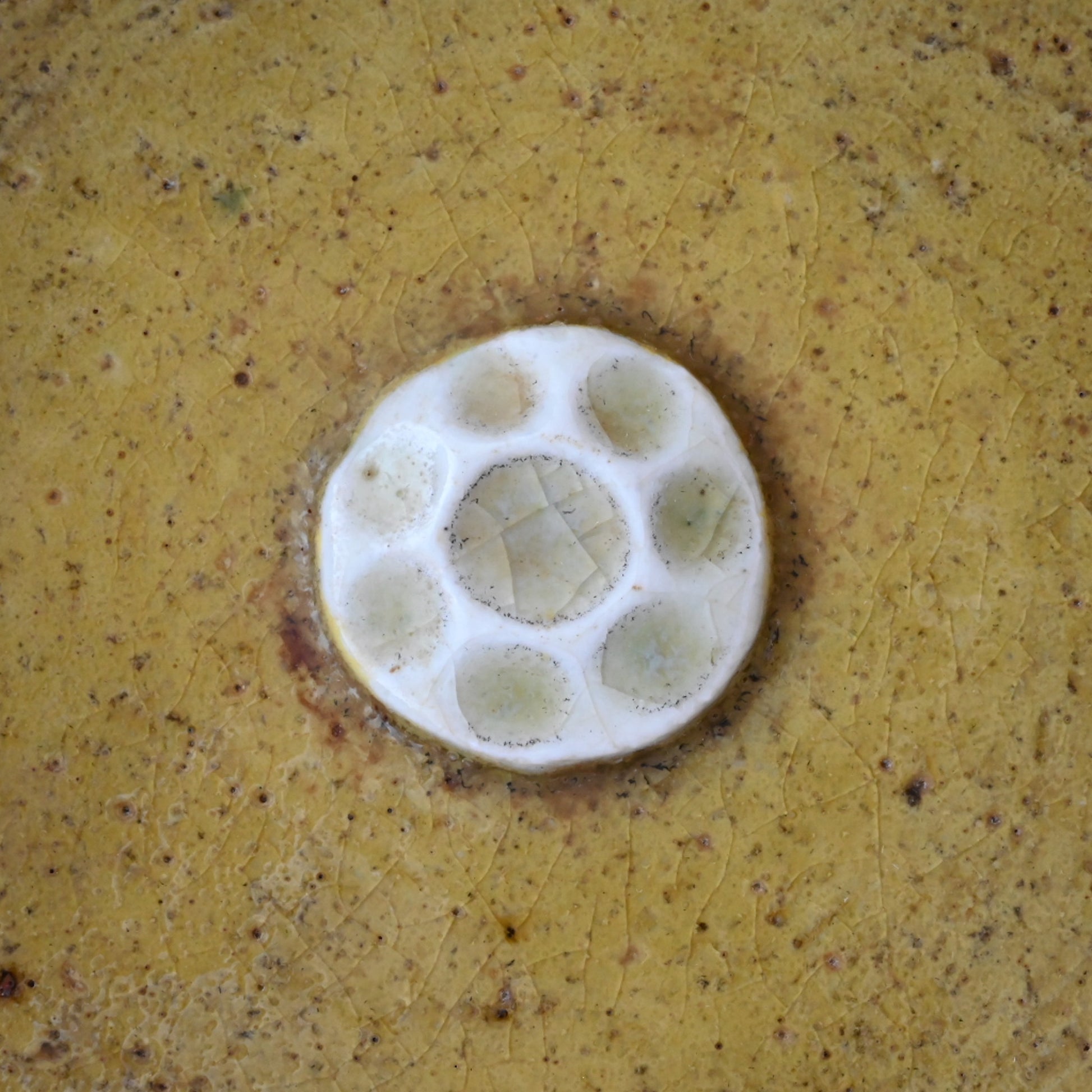 1960年代にスウェーデンの陶器メーカー、ロールストランドにて陶芸家のSylvia Leuchovius(シルヴィア・レウショヴィウス)が制作した大きな器です。彼女の作品には動物や植物をモチーフにしたものが多く、器の真ん中に花のモチーフがあしらわれているのが印象的です。外側は深いブルー、内側は落ち着いたトーンのイエローがとても素朴でやさしく、まるで絵画のような作品です。