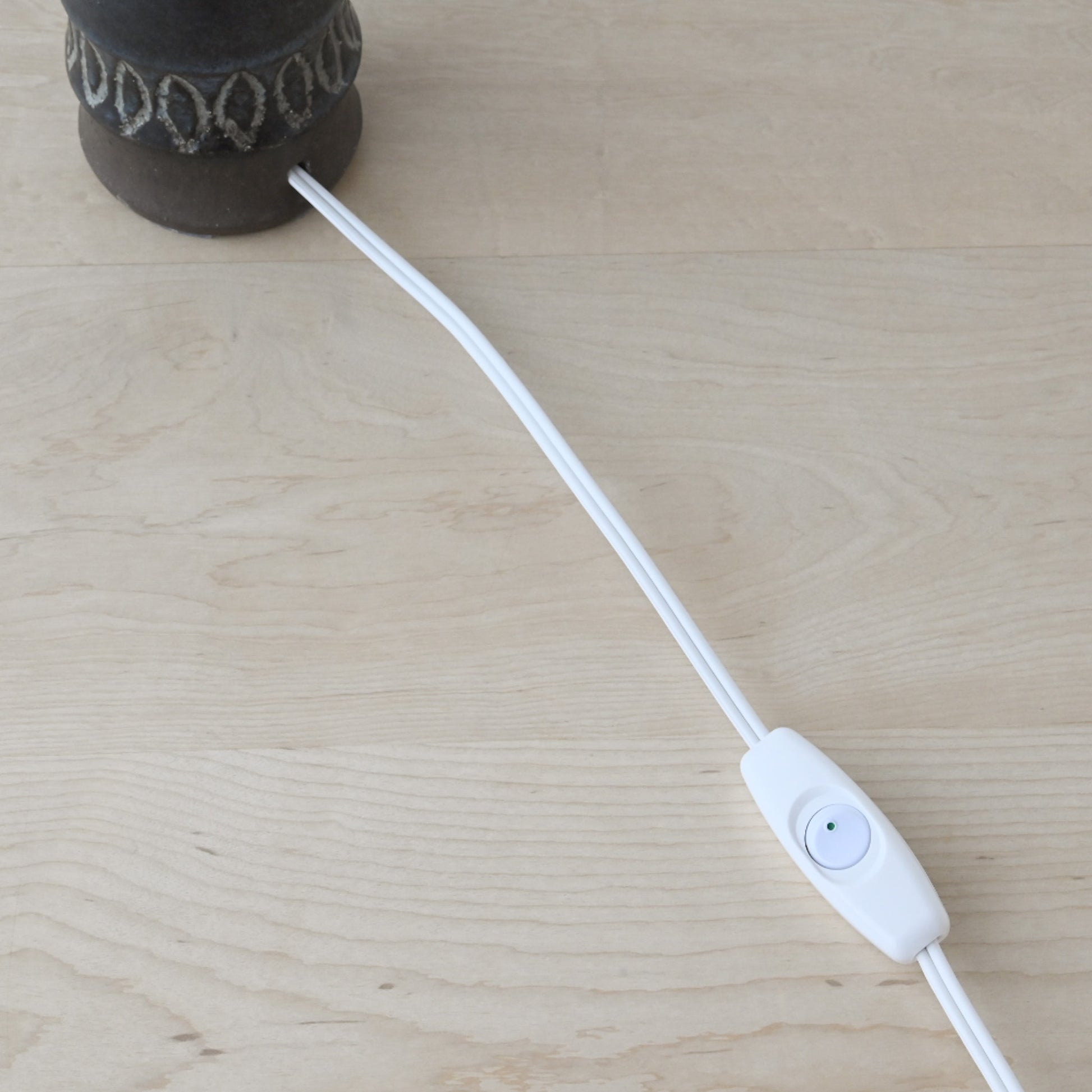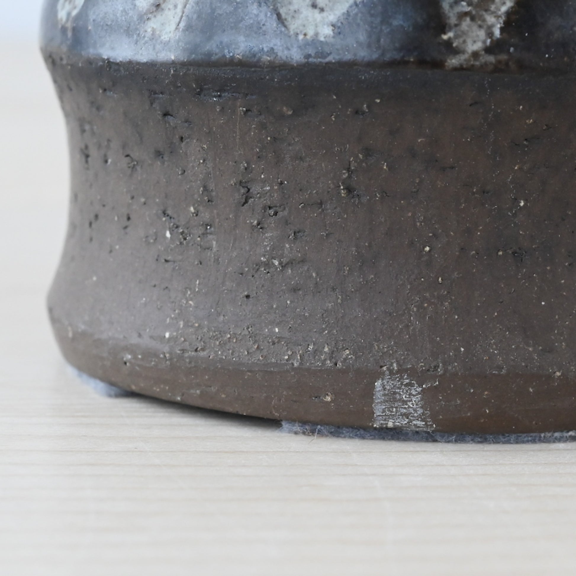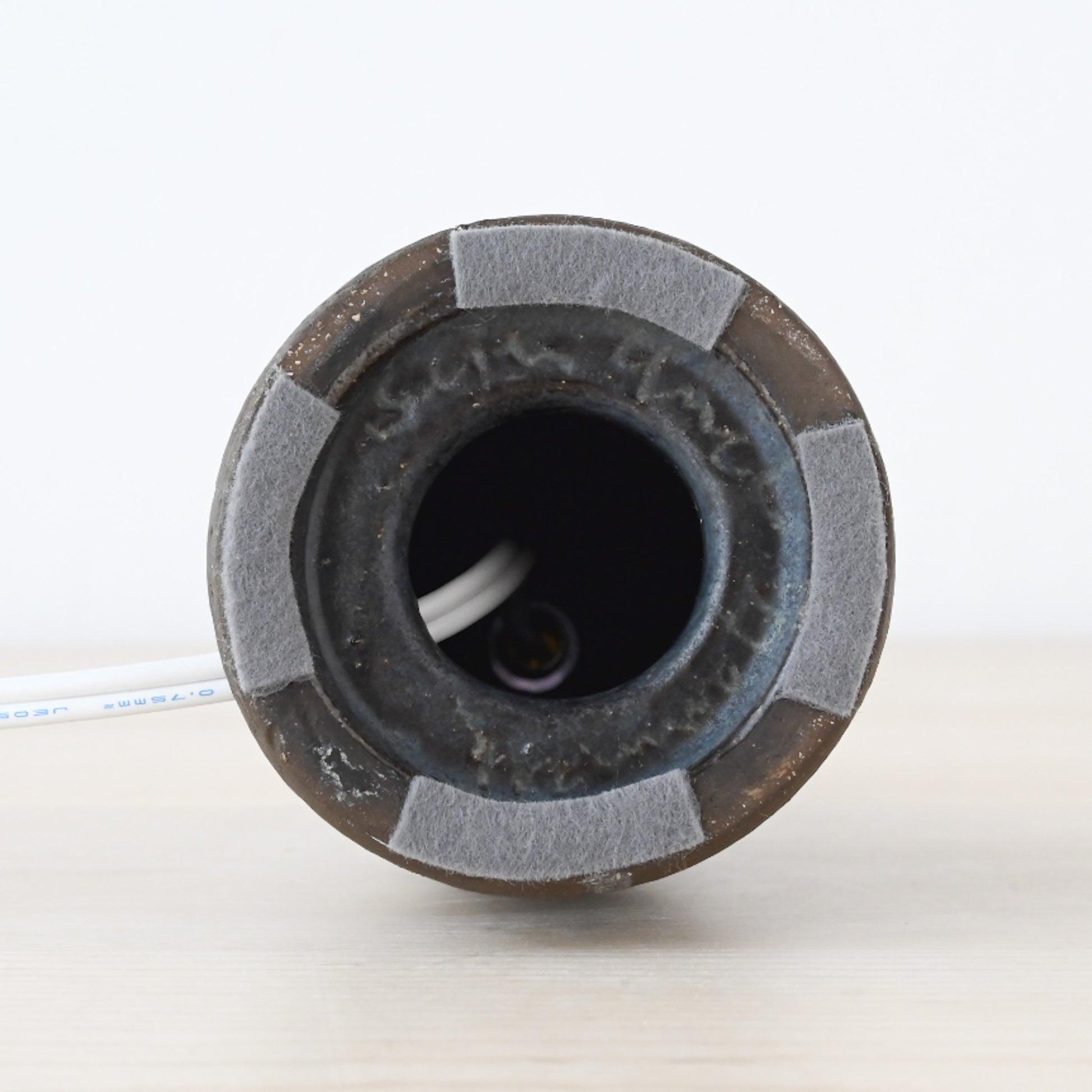 すっと立ち上がるフォルムに、深みのある釉薬。下部にはあえて素地を残し、土の質感がそのまま感じられる仕上がりです。一点ずつ手仕事で制作されているからこその個体差があり、味わいがあります。北欧ミッドセンチュリー期の陶芸と照明文化が結びついた、当時ならではの一品。オブジェとしても楽しめる、佇まいの美しいランプです。
