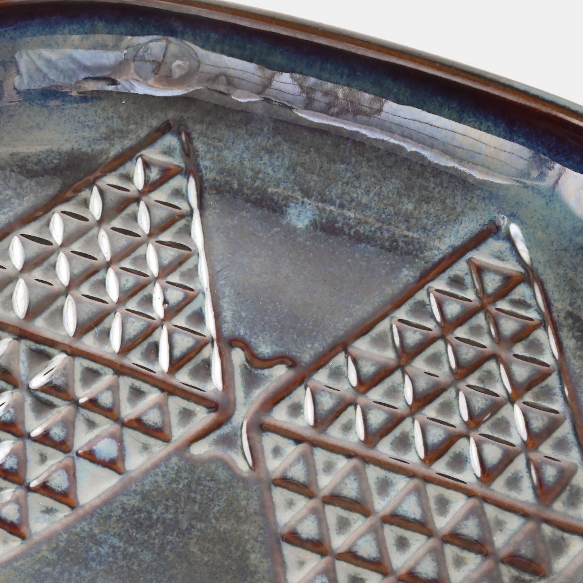 Søholm Stentøj (スーホルム ステントゥ) のためにEinar Johansen(エイナー・ヨハンセン)がデザインしたEJ64シリーズの長皿になります。1964年にデンマークのバルト海沿岸のボーンホルム島で手作りされた貴重なヴィンテージ品です。艶のある深いブルーが魅力的で、外側のマットなブラウンとの質感の違いが素敵な逸品です。存在感のある長皿は、物を入れて使うもよし、ディスプレイするもよし、お気に入りの使い方を見つけていただけたら嬉しいです。