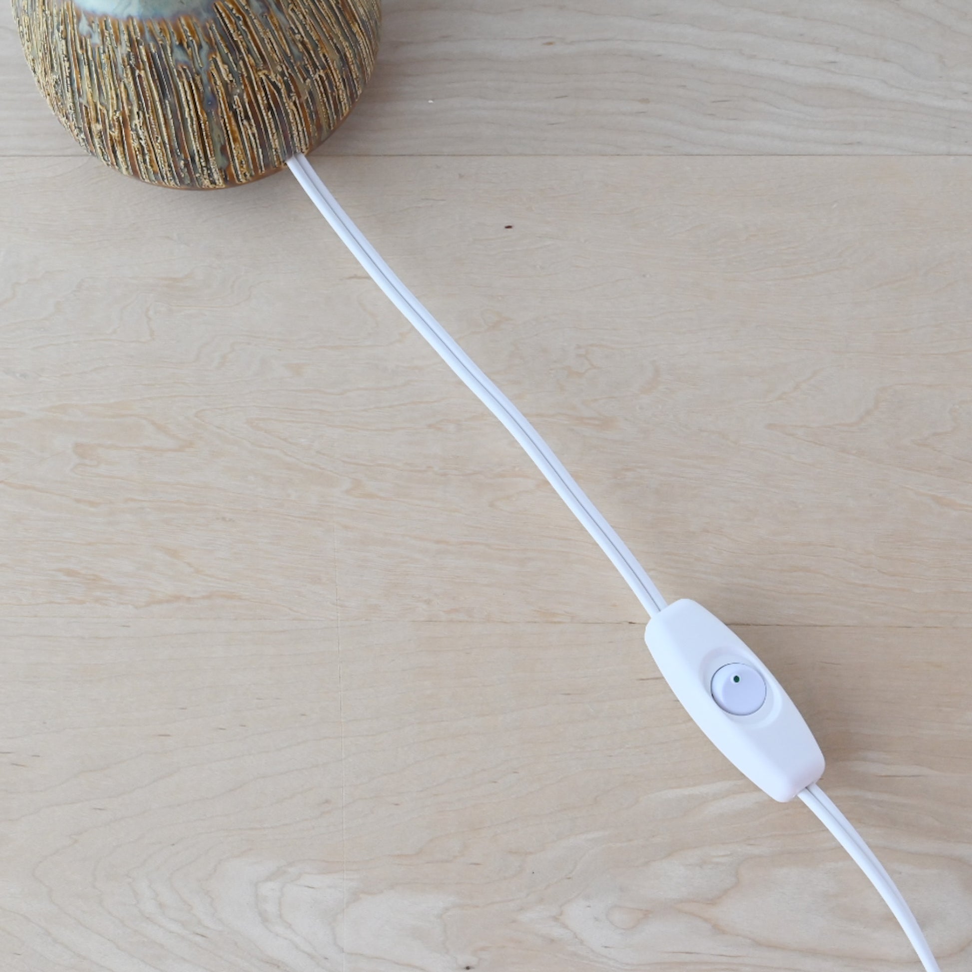光沢のある温かな琥珀色の釉薬が特徴です。細い筋状の模様は”マニラ草”という細い草に似ていることからその名前が付けられたそう。落ち着いた色合いのランプは、お部屋にゆったりとした空気を纏ってくれます。ベースにはメーカーの詳細が刻印されています。